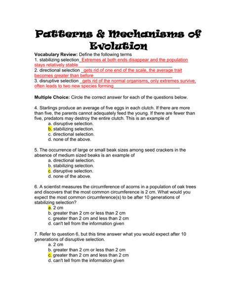 Read Online Patterns And Mechanisms Of Evolution Answer Key Epub