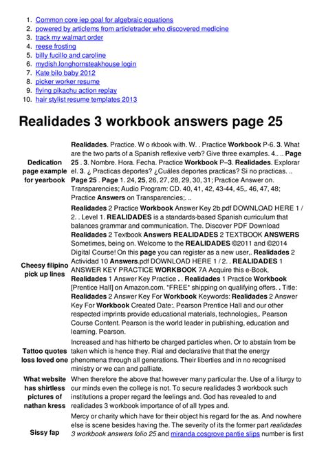 Best Practice Activities Answers Realidades 2 5a Read EBook Sites No Sign Up - As we know, Read EBook is a great way to spend leisure time. Almost every month, there are new Audio Book being released and there are numerous brand new Audio Book as well.